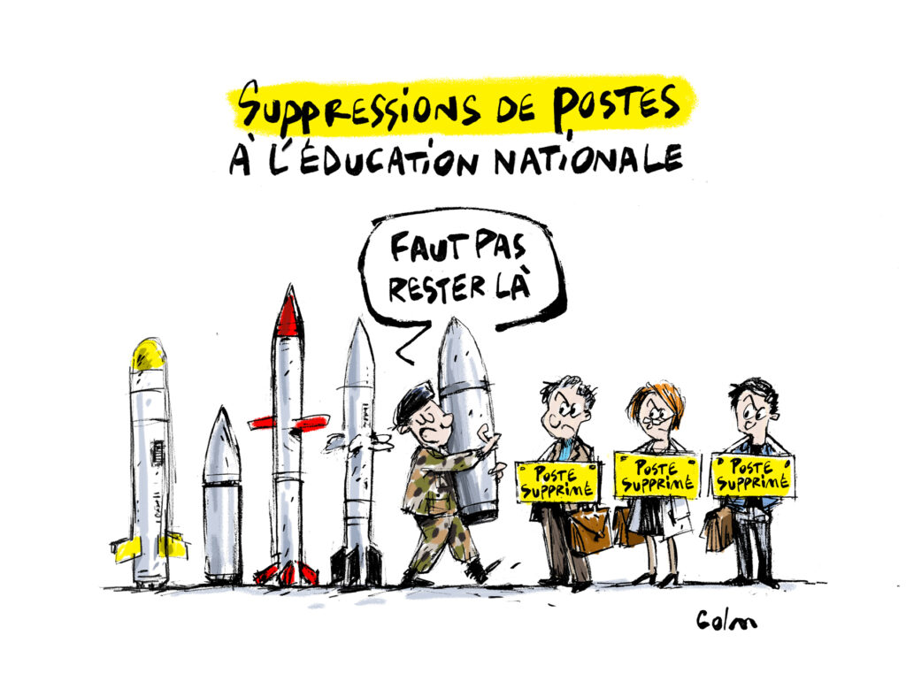 Pour notre secteur, fermetures de classes, fusions d’écoles, gel du point d’indice, baisse de 10 % de notre salaire lors des arrêts maladie, « revalorisation » des milieux de carrière seulement, passage des PIAL aux PAS, responsabilisation donnée aux seuls enseignants de réussir l’inclusion scolaire systématique sans moyens, réforme des programmes, réforme du recrutement des enseignants, nouvelles attaques contre les retraites, tout cela à un lien direct avec l’économie de guerre. C’est inacceptable de sacrifier la jeune génération, les enseignants et accompagnants, l’école de la République.